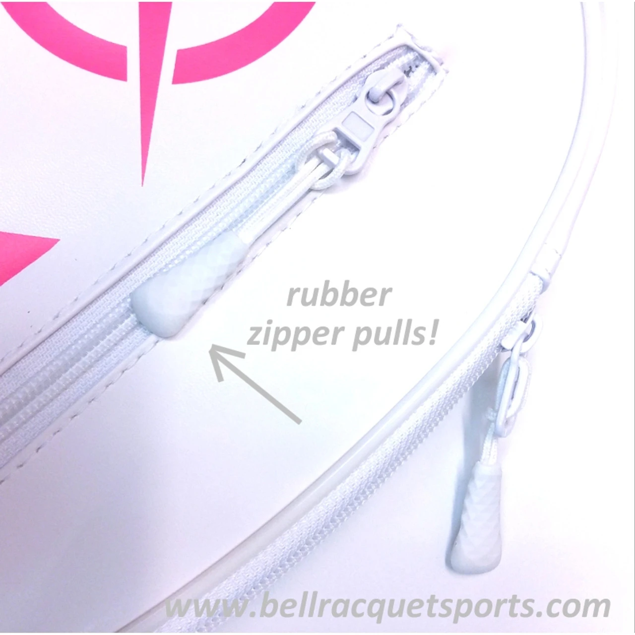 - Zippered closure with rubberized pull tab